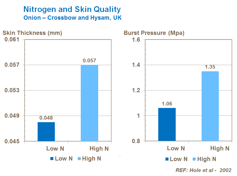 Studies show that nitrogen has a positive effect on onion skin quality by increasing the specific weight of the outer skin. This is a very important factor for storage.