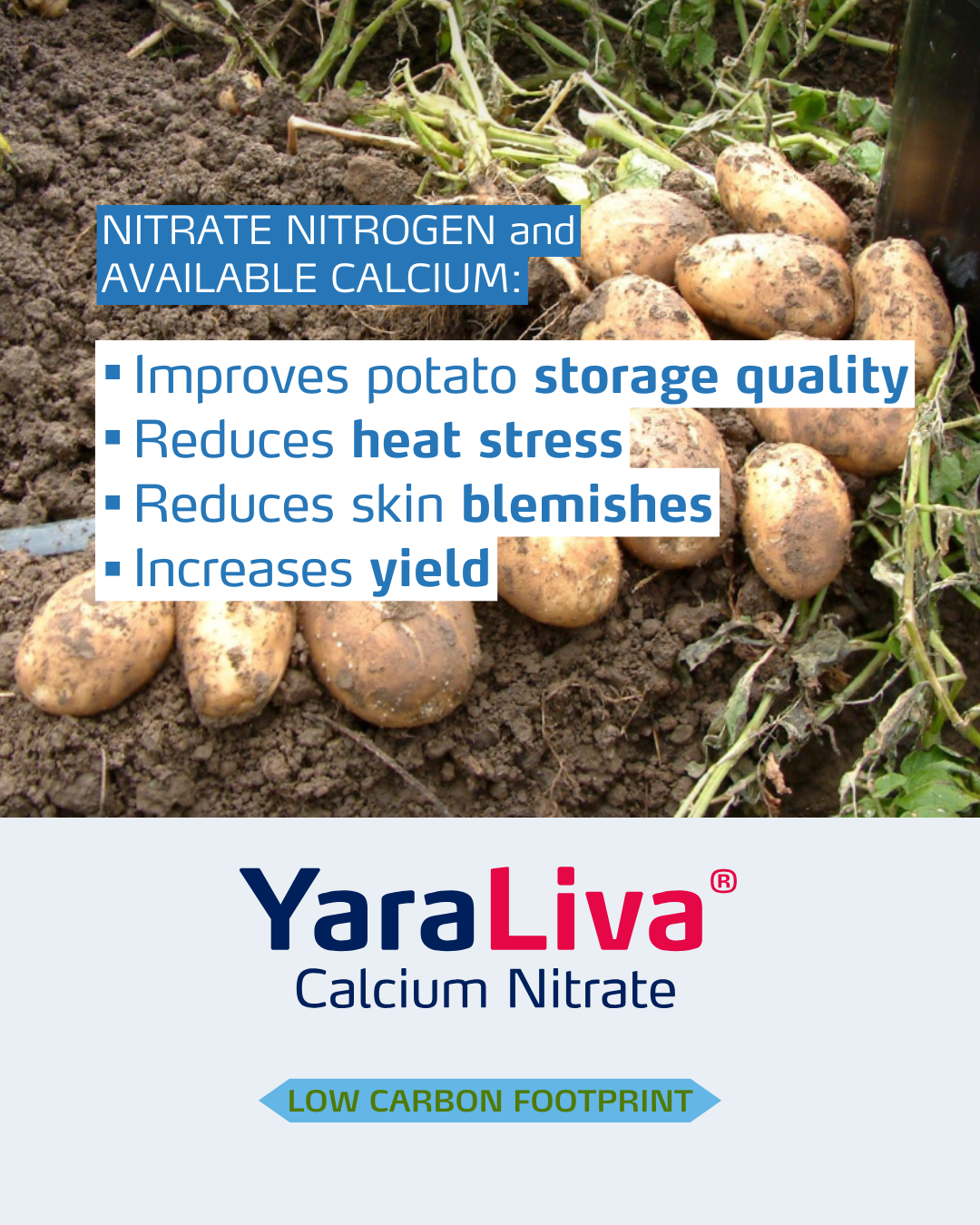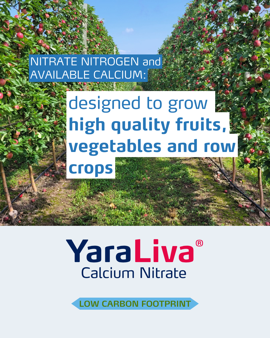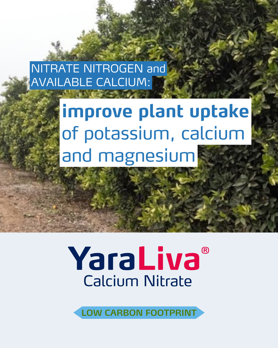Go to EmailsYara's comprehensive range of calcium nitrate fertilizers, YaraLiva, is specifically designed to grow high-quality fruits, vegetables, greenhouse, and row crops. YaraLiva Calcium Nitrate provides fast-acting nitrate nitrogen, perfectly paired with fully soluble calcium for preferential plant uptake.
