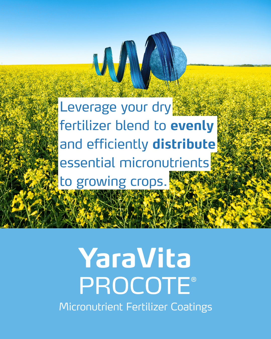 YaraVita PROCOTE is a dealer-applied proprietary micronutrient fertilizer coating that leverages the dry fertilizer to evenly and efficiently distribute essential micronutrients to growing crops.