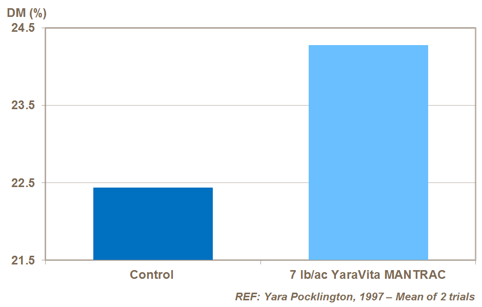 Severe manganese deficiency can also significantly reduce dry matter content.