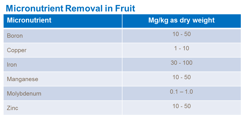 Boron is one of the key micronutrients. It has a significant effect on fruit ripening characteristics. It is essential for the structural integrity of the plant and important for pollen viability, flower and fruit development.