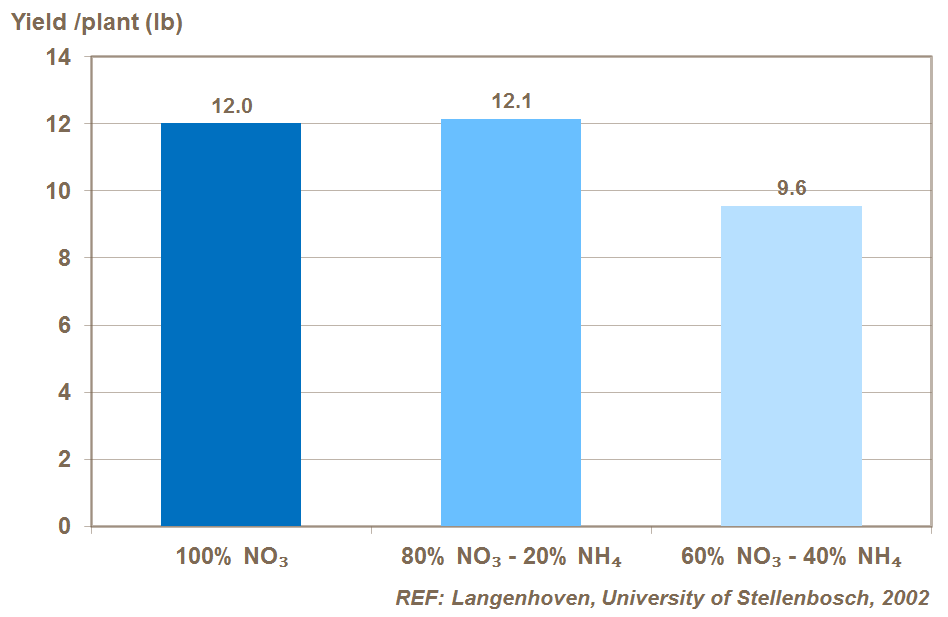 Over-use of ammonium N can cause problems. Trials in South Africa confirm significant yield losses of up to one third from use of ammonium in preference to nitrate.
