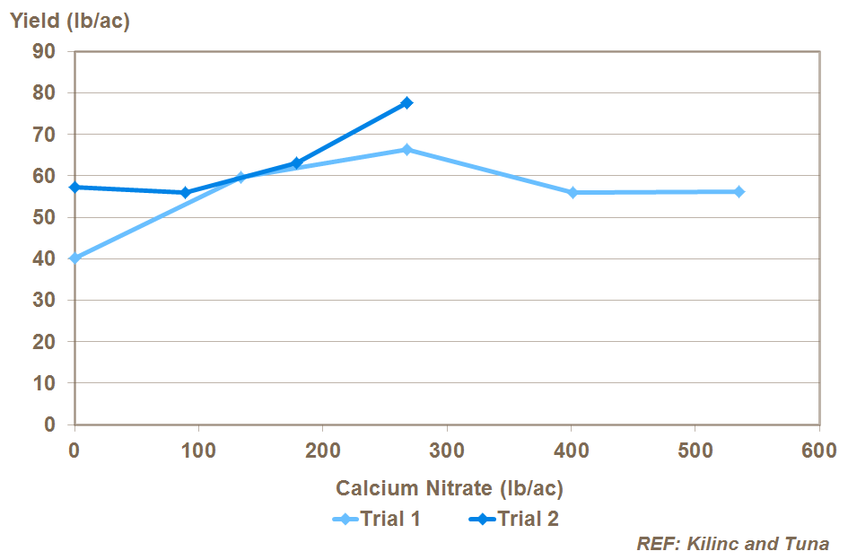 Too much nitrogen can depress yields so it is important to confirm rates following local trials. The figure above shows that trials in Turkey indicated a yield descrease when nitrogen was over-applied.