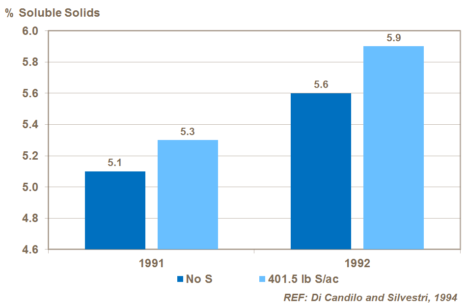 Sulfur also increases fruit total soluble solids content, as shown in studies in Italy.