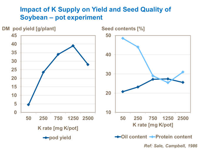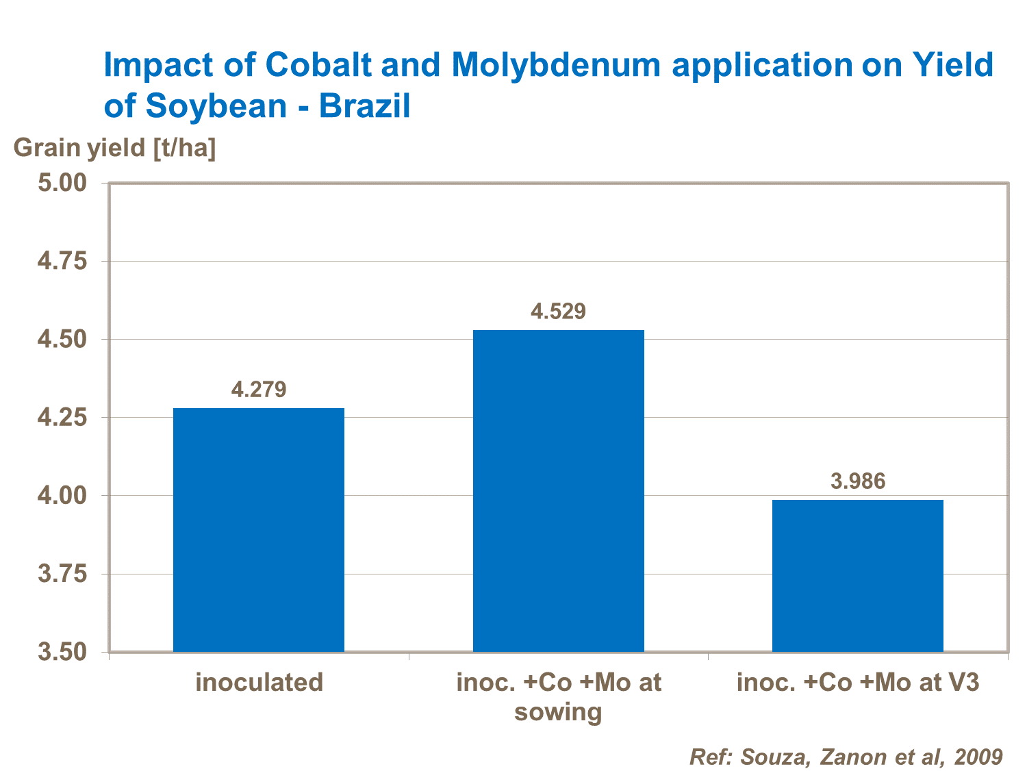 De plus, des études scientifiques montrent que les graines contenant du molybdène et du cobalt montraient une augmentation de leur teneur moyenne des grains de soja. Des taux de Mn plus élevés augmentent également la teneur en protéines des graines.